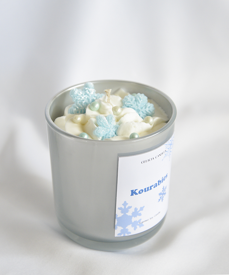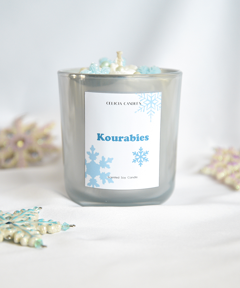 Χειροποίητο φυτικό κερί με άρωμα κουραμπιέ που δίνει μοναδική αίσθηση ζεστασιάς στον χώρο σας.